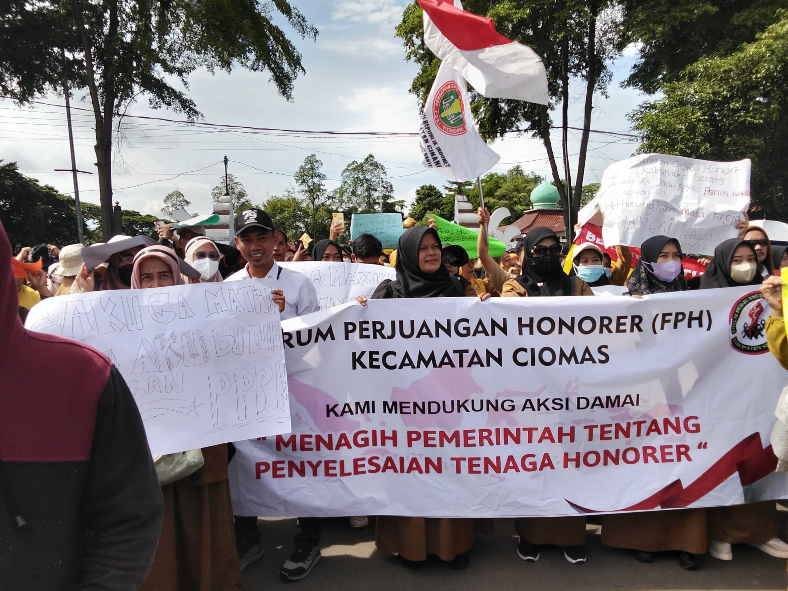 Pghm Ciomas kompak turut ikut menyuarakan aspirasinya Bu Novi ,pak Rudi serta seluruh honorer kecamatan Ciomas hadir