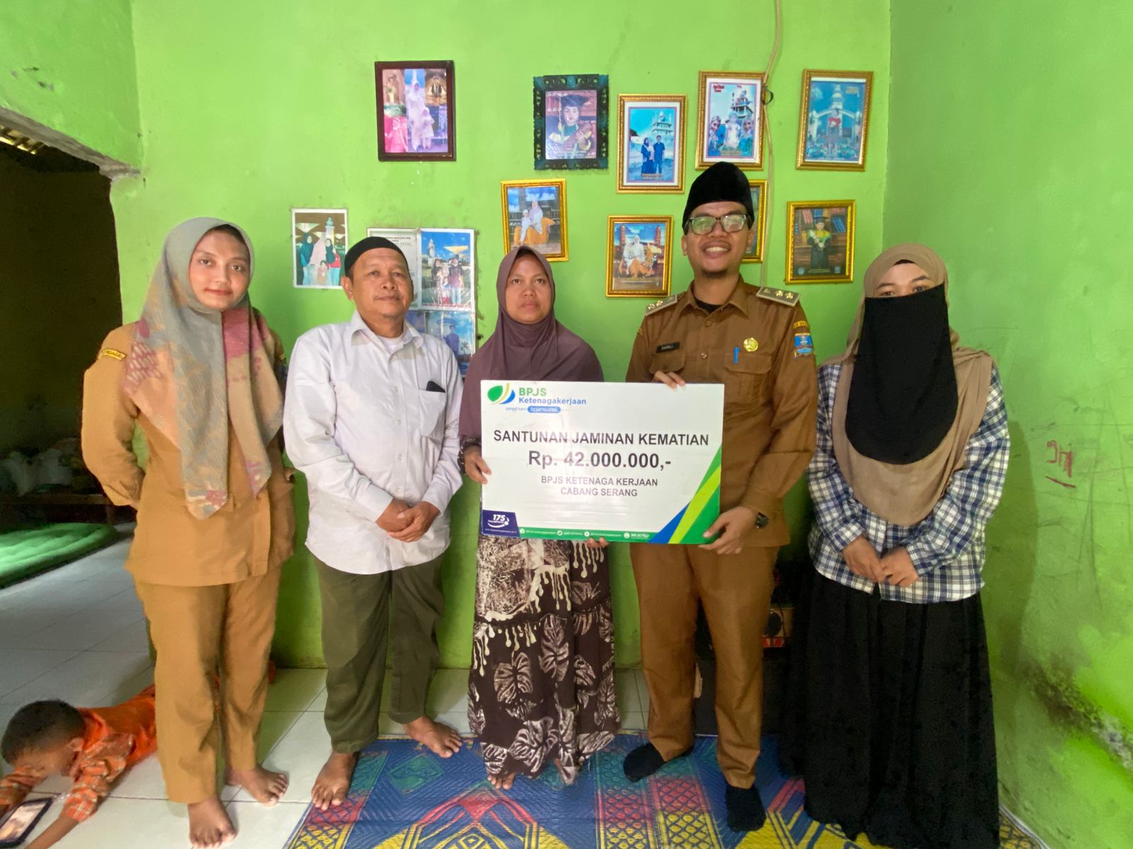 Santunan sebesar Rp42 juta diterima langsung oleh ahli waris, Ibu Sariah, sebagai bentuk perlindungan BPJS Ketenagakerjaan bagi peserta yang telah meninggal dunia.