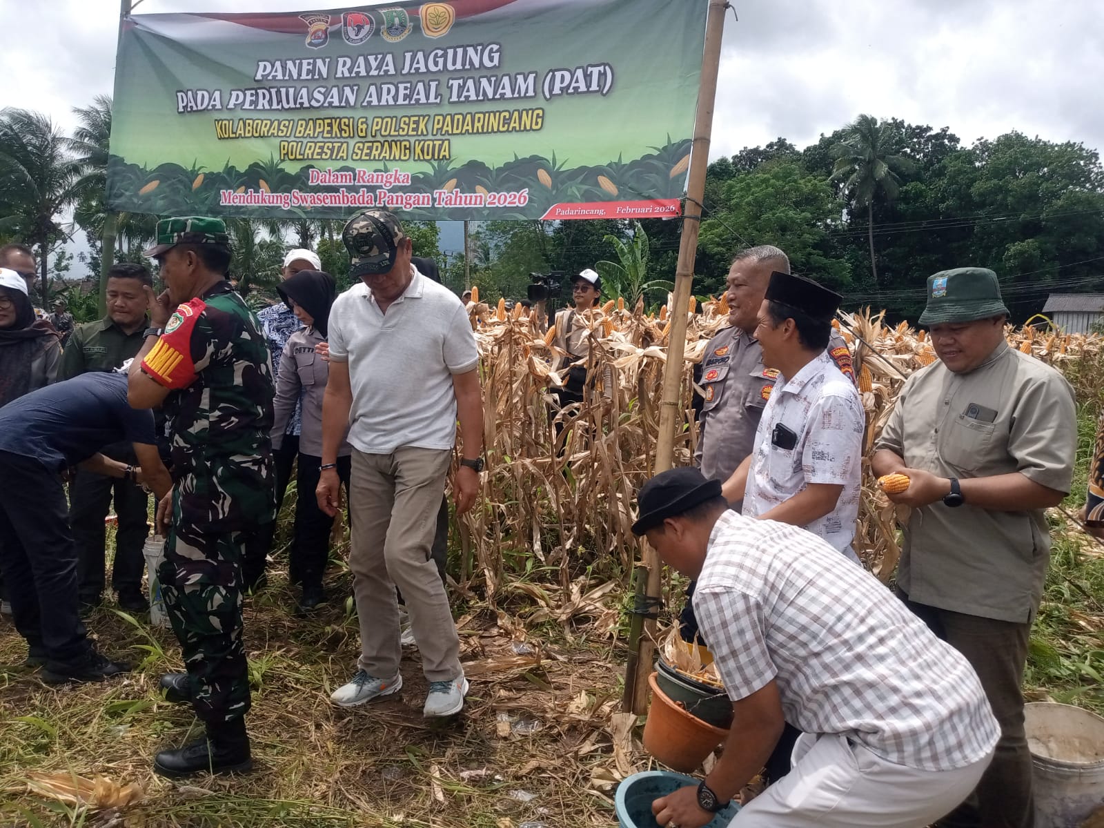 Panen Raya Jagung pada perluasan Areal Tanam ( PAT ) Kolaborasi Bapeksi dan Polsek Padarincang Polresta Serang Kota.